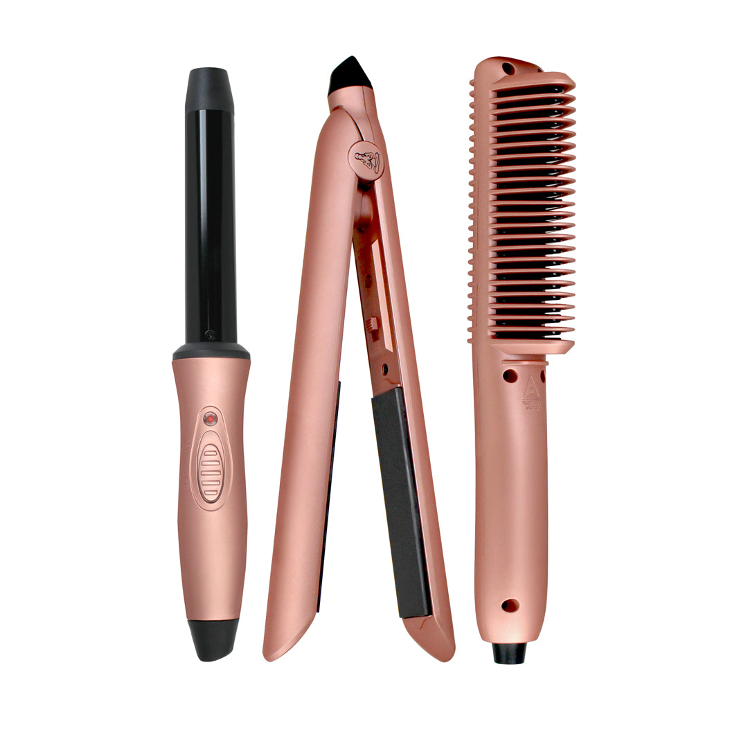 Featuring our Mini Heated Comb, Nano Styler, and Clipless Mini Curler, our Style 'n Fly Travel KitT include everything you need to look like you just left the salon in one cute, easy-to-grab and TSA approved travel case.