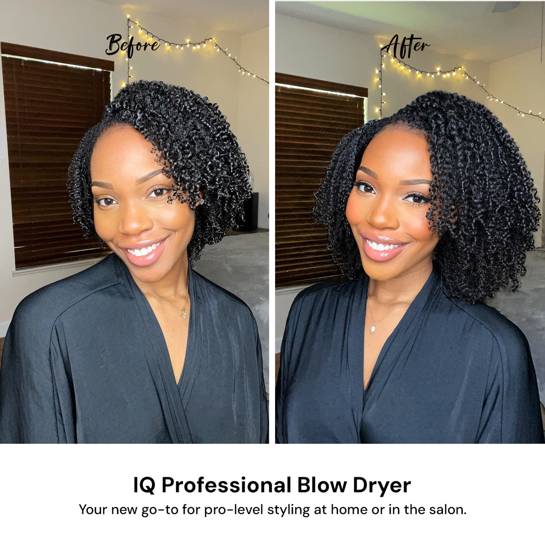 Meet the IQ Professional Blow Dryer—your new go-to professional hair dryer. With a powerful Brushless DC motor (110,000 RPM!), smart self-cleaning, and a digital temperature display, it delivers fast, precise styling every time.