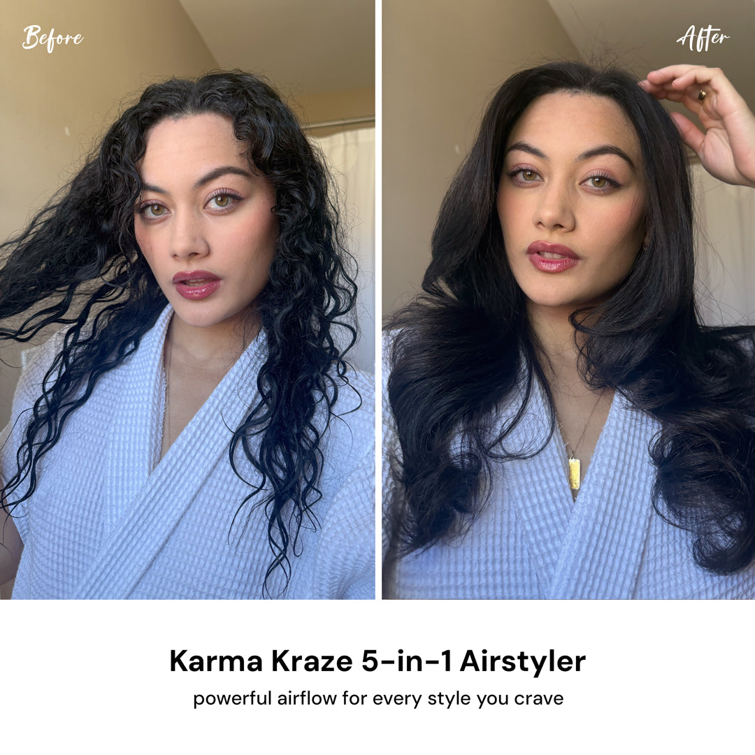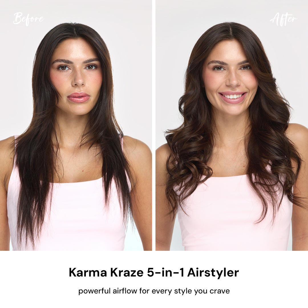 The Karma Kraze 5-in-1 Air Styler Set makes it easy to create every style you crave with one versatile tool. This all-in-one blow dryer comes with five interchangeable attachments so you can effortlessly achieve sleek straight hair, voluminous curls, bouncy waves, and everything in between.