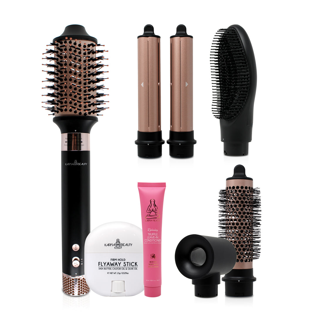 The Nebula Hot Air Brush is your all-in-one styling tool with 6 easy-to-swap attachments for blowouts, curls, and waves. With advanced ionic and infrared technology, it smooths and shines while protecting hair from damage. Paired with the Flyaway Stick and Replenishing Truffle Leave-In Conditioner, this bundle tames frizz, adds hydration, and locks in your style with healthy, natural hold.